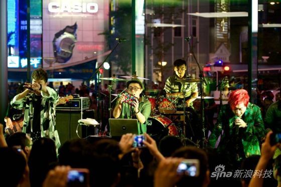新浪手機訊 9月15日下午消息,上周六,蘋果公司新廣告片主角,來自中國的耀樂團在北京王府井蘋果零售店(Apple Store)進行了主題活動。
