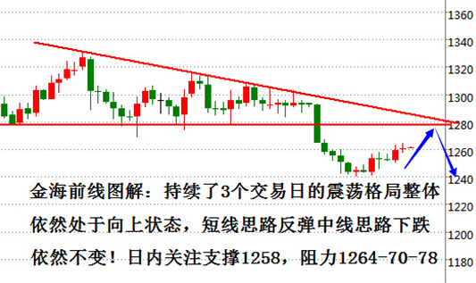 中線思路:反彈后觸及1278-80的壓力后繼續下跌!