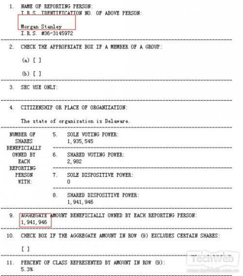 汽車之家SEC檔案顯示,摩根士丹利目前持有1,941,946股普通股,占同類型普通股總量的5.3%(5.3%並不是在全部發行股票總量中所占的比例)。