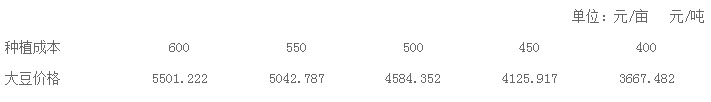 圖表3:單產1.636噸/公頃的情況下不同種植成本的大豆價格
