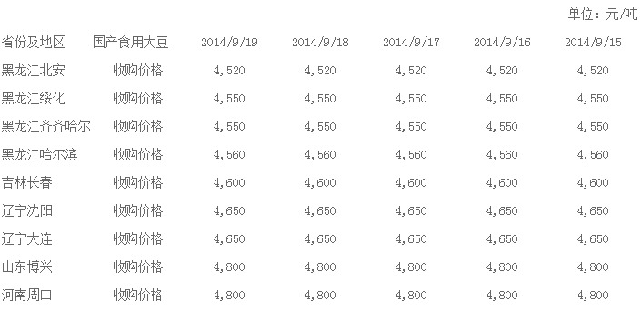 2014年國家出臺政策將“收儲”改為“目標價格補貼”,即直補政策。2014年5月17日,國家發展改革委、財政部、農業部聯合發布2014年大豆目標價格,為每噸4800元。目標價格在作物播種前公布,以向農民和市場發出明確信號,引導農民合理種植,安排農業生產。試點地區同一品種目標價格水平都是一致的,東北三省和內蒙古實行統一的大豆目標價格。