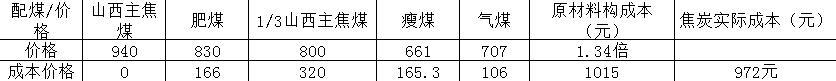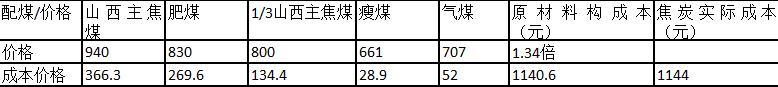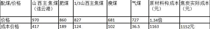 焦煤是資源,焦炭是商品,以資源的最低價結合配煤方式可以估算成本的價格。