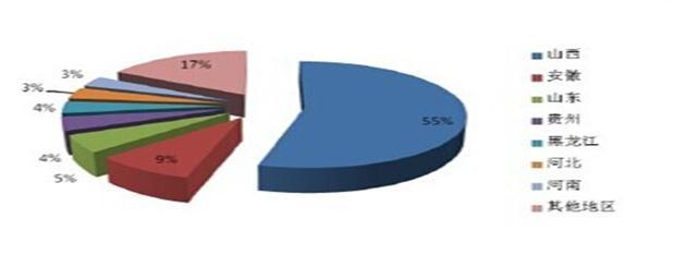 2010年,全國煉焦精煤統計產量60792萬噸:其中,山西統計產量最多,達13788萬噸,河北據第二位,達10915萬噸。實際上山西省的煉焦洗精煤在國內鋼鐵企業中的骨干作用居全國首位。