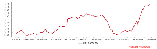 海關6月8日公布的最新數據顯示,中國5月份進口鐵礦石7738萬噸,1-5月份鐵礦石進口總量為38266萬噸,去年同期累計為32151萬噸,同比增長19.0%。而庫存方面屢創歷史新高,一方面意味著供給壓力持續增加,但同時也可能迎來暫時的回落,以對盤面價格起到一定的促進作用。