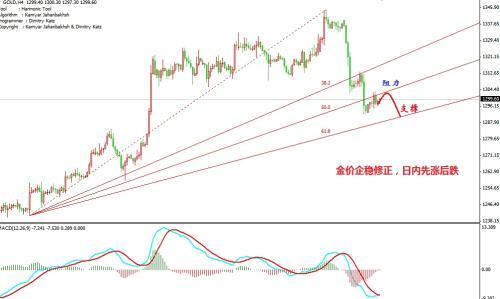 美元指數在昨日受到刺激后,繼續走高至80.58附近,底部支撐進一步顯現,受此影響,黃金昨晚沒有太大動作,加之前兩日的大跌消化了繼續下跌的力度,金價只是位於1300美元整數關口波動。日線收取帶上影線較長的小陽,盡管如此,但價格K線依舊運行於空頭范圍之內,布林帶出現縮口,MACD零軸上方死叉,綠柱量能有所減化,KDJ指標50下方小幅超賣,RSI三線走平於50附近,當前下方1292成為能否延續下行的關鍵支撐,而上方短期阻力位於1305附近。4小時上,價格在修整完后,布林帶有收口之意,目前來看還是處於反彈階段,早間的拉升讓K線穿越MA5與MA10,MACD指標綠柱縮短,空頭能量消耗殆盡,雙線如若形成金叉並伴隨量能的釋放,今日價格會繼續反彈。整體上金價偏空的格局還在發展,只是短周期迎來了指標的修復整理。昨日有跟隨在1298附近做空的朋友建議找低位出局,今日會呈現先行反彈再下跌走勢。
