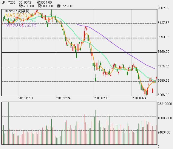 豐田周三股價上揚 0.12%,收 6808 日元。