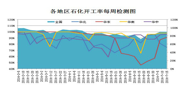 庫存方面來看,pe三大地區整體庫存穩中有升,整體庫存水平並不算高。分品種來看,此次庫存漲幅較為明顯的品種是線性,高壓和低壓則穩中有降。反觀石化企業,中石油中石化的整體庫存仍維持在90萬噸出頭較6月末有所增長,但單就量而言或難以對石化企業造成壓力。 本次庫存的提升主要來自兩方面,一方面源於月初以來石化企業不斷調漲出廠價格挫傷了市場的交投氛圍,另一方面裝置重啟所增加的產量在庫存上得到了體現。當前石化廠商繼續沿用之前對庫存的控制規則,即月初趁庫存不高的之時輪番挺價,當價格步入高位,庫存也有所走高后,出廠價格便會走軟以配合石化企業和貿易商順利去庫存。在6月份之時即便下游的需求萎靡采購以剛需為主,但這一規則還是成功地去除了石化企業和貿易商的庫存。進入7月后農膜企業開機率逐步回升,只要下游廠商能繼續按需采購,從長遠看來庫存企增長放緩乃至企穩也並非難事。