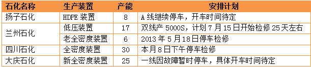 圖表2:國內聚乙烯裝置檢修統計