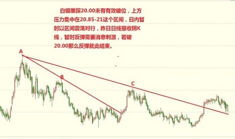 4小時:來回的區間震盪,卻始終在4小時boll中軌位置受壓,下方兩次下探20.00附近后快速反彈,不過向上反彈20.76無疑是關鍵性壓力,數次的下探20.00都沒有破位,今天暫時先看20.00-20.75區間內的得失,這一周非農是主角,所以前期的走勢只是為周五非農做鋪墊而已。