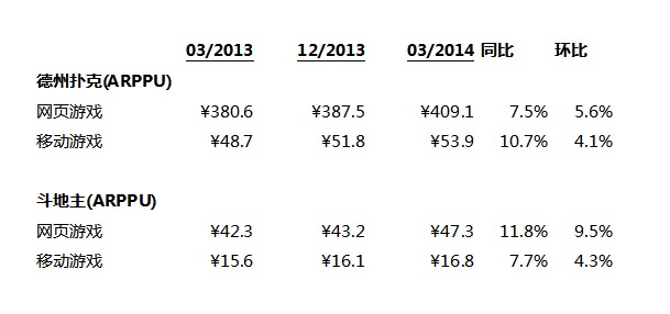 每付費用戶的平均收益(arppu)環比增長明顯,德州撲克arppu同比增7.5%及10.7%,環比增約4-5%,斗地主arppu同比增11.8%及7.7%,環比增9.5%及4.3%。以上數據反映平均每用戶季度收入皆有增長,用戶金錢投入增加亦反映遊戲模式能使用戶增加購買遊戲內的物品,用戶參與度提高。