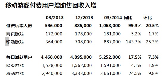 集團第一季收入增48.3%至¥221.6百萬人民幣(下同),當中網頁遊戲收入跌1.7%至¥110.2百萬,移動遊戲增198.8%至¥111.4百萬,毛利增41.4%至¥133.2百萬,毛利率降3個百分點至60.1%,銷售及市場推廣開支增57.5%至¥42.7百萬,行政開支增41.5%至¥26.6百萬,所得稅率升1.5個百分點至16.8%,首季股東應占利潤增55.5%至¥62.2百萬。以非國際財務報告準則計算的經調整純利則增40.9%至¥71.8百萬。每日活躍用戶同比只增17.5%至5.25百萬人,而付費玩家占每日活躍用戶比率同比增11.8個百分點至24.2%