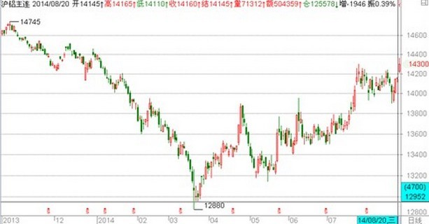 圖4可以看出,自2013年10月初以來,大賽選手鋁投機性持倉基本處於偏多狀態。自今年6月以來,鋁投機性持倉比基本維持在區間50%-80%附近震盪。近期投機性持倉小幅回落且仍在50%上方。8月20號這一交易日,大賽選手鋁投機性持倉比為56.2%。