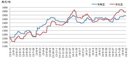 近期亞洲乙烯價格高位回落,市場成交情況仍較疲弱。截至8月21日,亞洲乙烯收盤價格在1530美元/噸cfr東北亞和1495美元/噸cfr東南亞,東北亞地區終端用戶表示,在下游多數產品利潤虧損的狀態下,聽聞購買意向低於1500美元/噸cfr東北亞,而報價在1540-1590美元/噸cfr東北亞。聽聞有8月兩單成交從歐洲運往亞洲。由於歐亞運費居高不下,中國的下游需求繼續疲軟,多數下游產品利潤虧損,致使開工率更低。在東南亞地區,同樣8月下半月裝載的9000噸乙烯報價低於1550美元/噸cfr東南亞。下游需求延續疲弱,觀望態度不減,實盤成交量沒有較大突破。