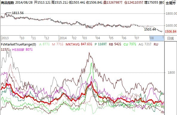 和訊期貨市場波動率由標的每日價格變化率(百分比)的標準差以加權加權編制而成,該指標反映了各品種價格波動率的變化情況,指標高低直接反映了當前哪些品種波動最劇烈。該指數越高,表示當前日線上收盤價的跳動越大。市場波動率均值mktavg為活躍的15個品種的簡單平均,如果市場波動率從長期平整位置突然抬頭,意味著可能市場會展開一輪趨勢。