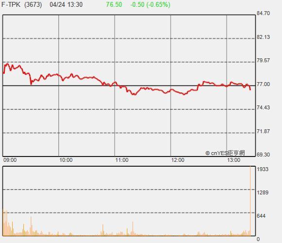 F-TPK第1季合併營收達494.33億元,季減約21%,年增逾2成。近期各家法人出具報告,預估F-TPK首季獲利約35億至45億元不等,首季每股盈餘約為11至13元,較去年第4季旺季時減少,但與2012年同期相較,可能持平或增長。