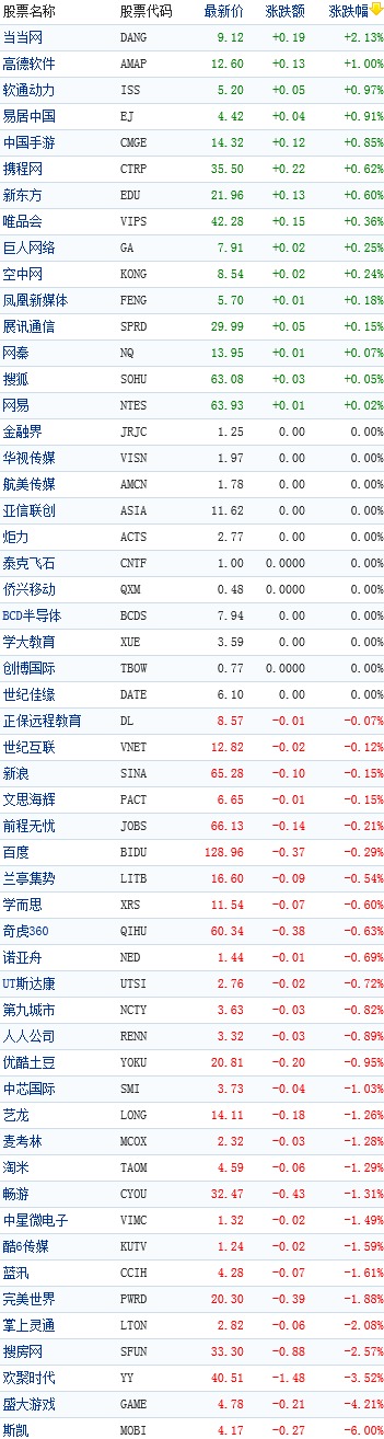 中國概念股周二早盤普跌,斯凱跌6%,盛大游戲跌4.21%,歡聚時代跌3.52%。(晨暉)