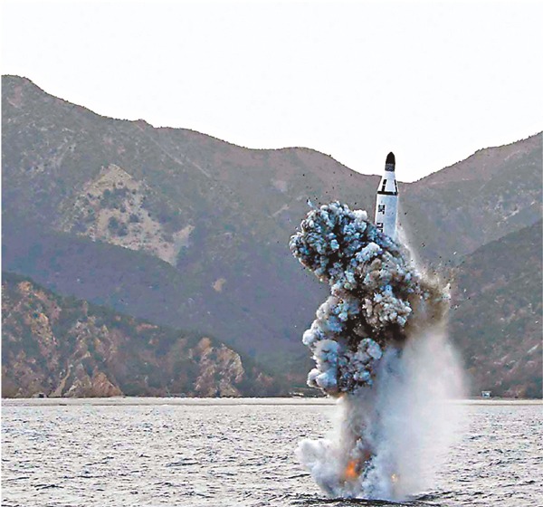 北韓官方朝中社周日報導,軍方在領袖金正恩指導下進行潛艇發射彈道導彈SLBM試驗,「取得巨大成功」,這賦予平壤「另一個強大的核子攻擊手段」。金正恩對試射結果表示滿意,聲稱今後可在任何時候對韓美進行水下攻擊。南韓軍方聲稱,北韓是在周六傍晚約6時30分,利用2000噸級「新浦」級潛艇,在咸鏡南道新浦市對開試射。但導彈只飛了30公里,遠低於典型潛射彈道導彈的300公里最低射程,相信發射失敗,與北韓的說法相反。