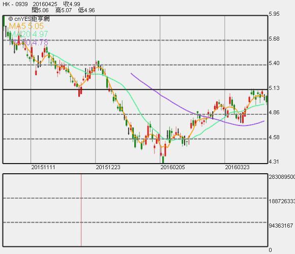 美銀預計以5.63 - 5.81 港元(約73-75美分)出售 20 億股建設銀行H股;周三台北時間上午 11︰05,建設銀行香港掛牌股價挫低 2.19%,暫報 5.8 港元。