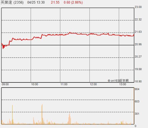 筆電代工英業達(2356-TW)今年以來利多不斷,近日又傳出接獲Google資料中心訂單,加上先前的蘋果iWatch訂單利多,英業達今(9)日股價再度表態強攻,領先大盤率先衝高,盤中漲幅達 1 %以上,穩步沿 5 日線上攻。