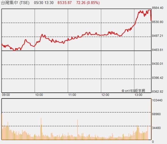 儘管美國可能升息,加上又有摩台期結算,不過台股今天延續上周五的強勁走勢,由金融股點火拉抬指數,加上新政策概念股的生技及網通更是成功扮演中小型強勢指標,指數緩步走揚,午盤過後漲幅擴大,一度大漲近100點,也順利攻上8500點整數關卡,終場上漲72.26點,以8535.87點作收,收復季線8500點,成交值768.25億元。