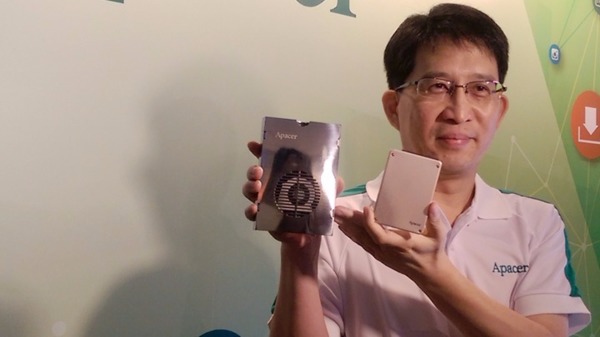宇瞻總經理張家騉展示今年新品。(鉅亨網記者楊伶雯攝)