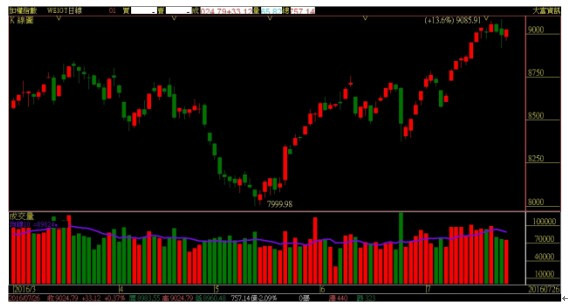 大盤指數目前已可明顯看出場上多方無畏於指數兵臨前波,去年11月、今年3月份兩波漲勢兩道反壓高點-8871點、8840點城下,反而挾著逐漸增溫、擴大之成交量,市場穩步增強多方控盤氣勢,成功連續站回、站穩先前兩道反壓鍋蓋高點。同時也希望接下來能夠持續延伸,現階段多方控盤、利於多頭格局長線漲升慣性,順利將大盤指數往更高檔點位-上檔反壓整數大關9200點推升、站上。