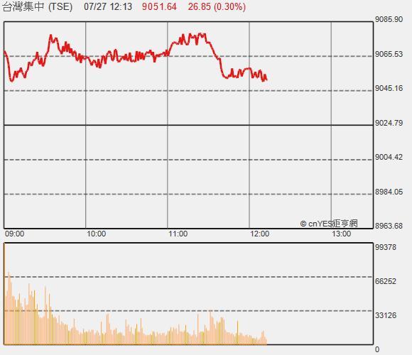 台股盤中—蘋果財報振奮多頭信心 雙王帶頭衝 站穩9000點