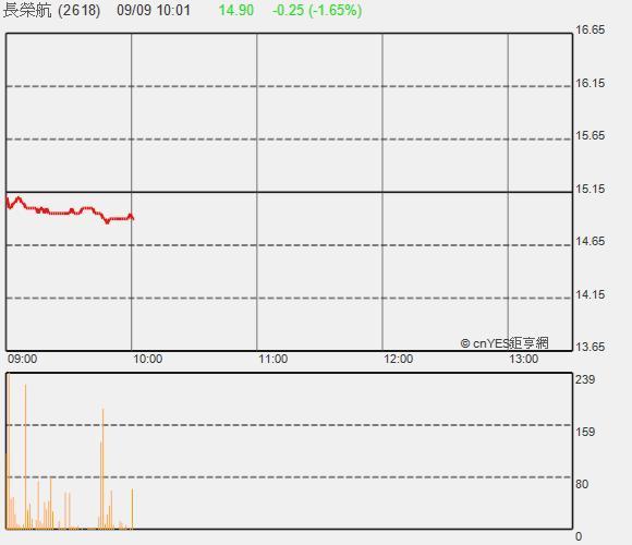 來到盤中,復航因用油成本占總比重較低,此利多消息並無太大作用,盤中越走越弱,一度跌幅2%。
