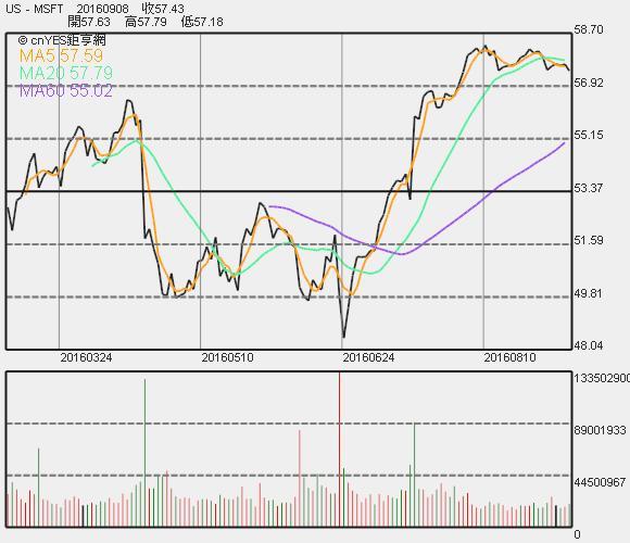 微軟股價收盤連續線圖