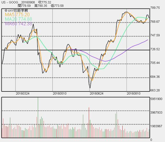 Google股價收盤連續線圖