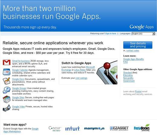 工資表就是其中之一。財務軟件開發商Intuit在線工資表業務首席技術官馬丁‧蓋茨(Martin Gates)表示,谷歌尚未推出ERP(企業資源規劃)軟件,但Intuit卻能夠提供這種服務。他還演示了如何將谷歌Apps與Intuit的網絡版工資表應用進行整合。通過這種方法,員工只需要點擊谷歌Calendar中的一個圖標便可以下載工資單。