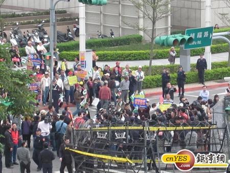 會場外的抗議群眾。(鉅亨網記者施冠羽攝)