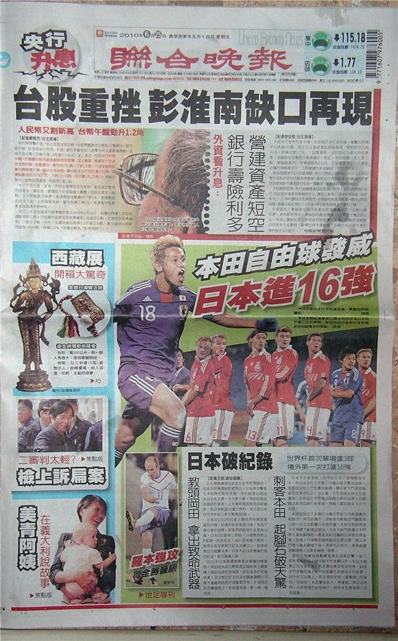 日本總教練岡田武史在世界杯開踢前,在南非訓練基地前曾指出,自由球攻擊是日本取勝的致命武器,其中超過25碼由本田圭佑主踢,今天對丹麥,岡田的致命武器終於展現,上半場兩個直接自由球進球,為日本創造3:1重大勝利,並且是日本在世界杯史上首次單場進3球。