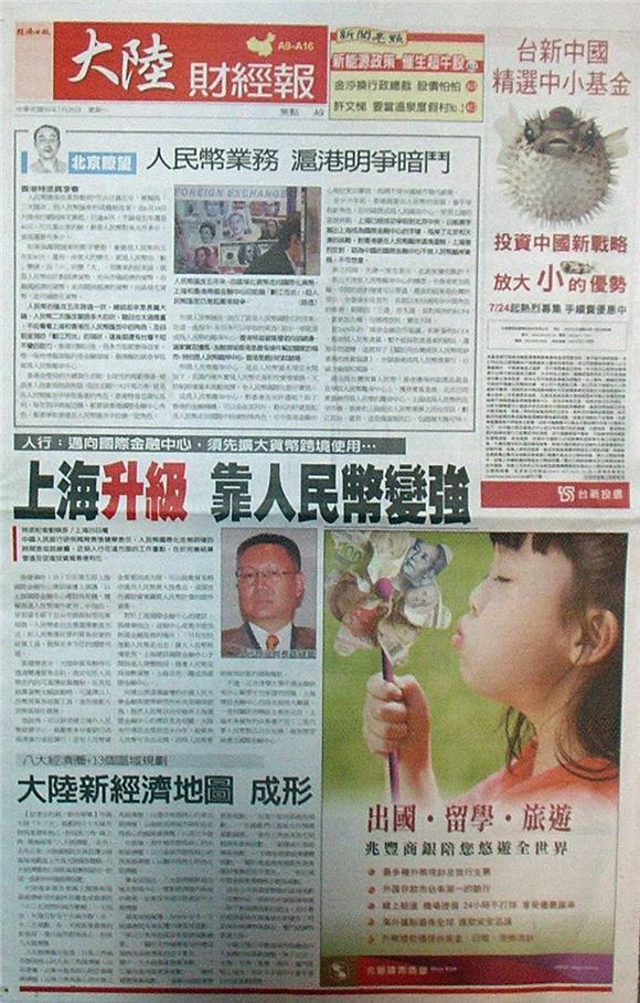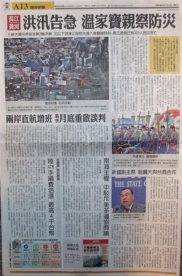 台灣主要報紙大陸版要聞標題一覽 (7月26日)