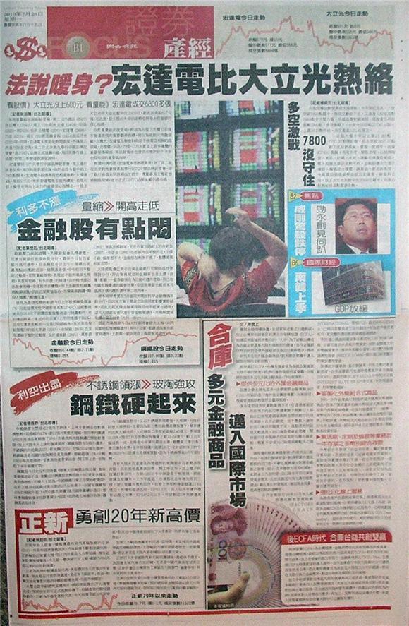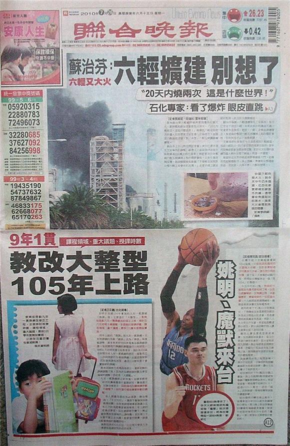 台灣主要晚報標題一覽 (7月26日)