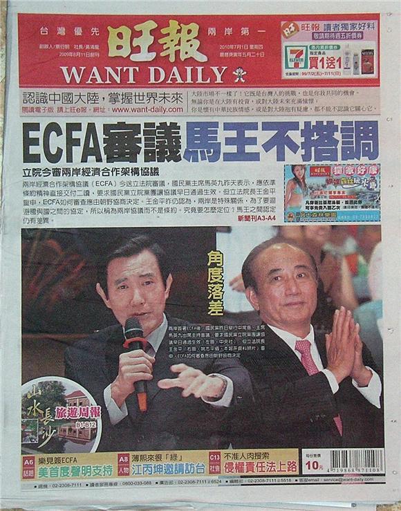 ◆旺報:ECFA審議馬王不搭調
