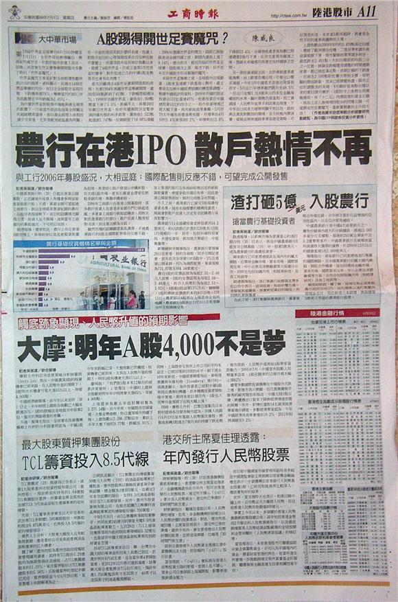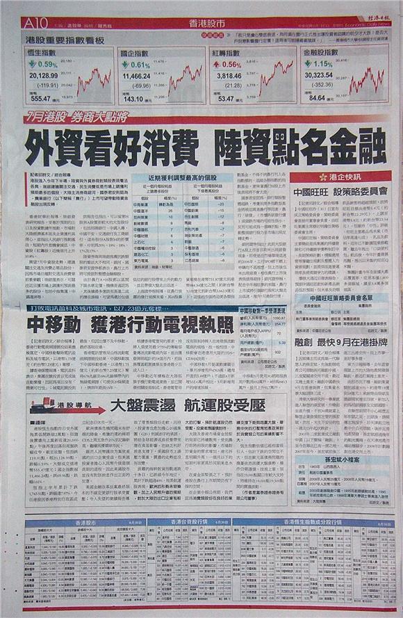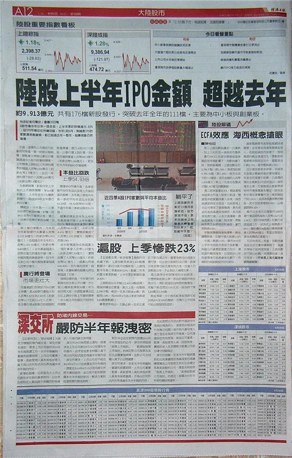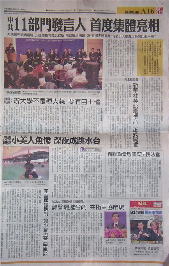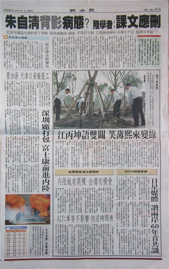 台灣主要報紙大陸版要聞標題一覽 (7月1日)