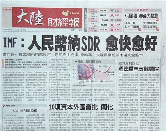 國際貨幣基金(IMF)總裁卡恩認為,人民幣納入IMF特別提款權的組成貨幣「愈快愈好」,但前題是人民幣匯率必須要能由市場自由決定,而且可以自由兌換。