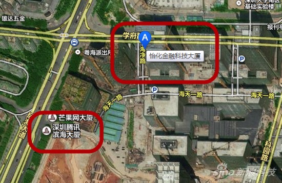 值得注意的是,阿里及百度等均在此軟件園內設立辦公地點,而周鴻禕的手機基地新址,緊鄰騰訊新大廈,距離僅185米。