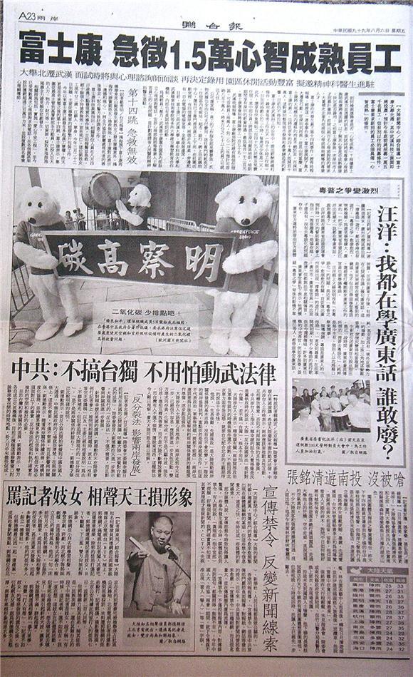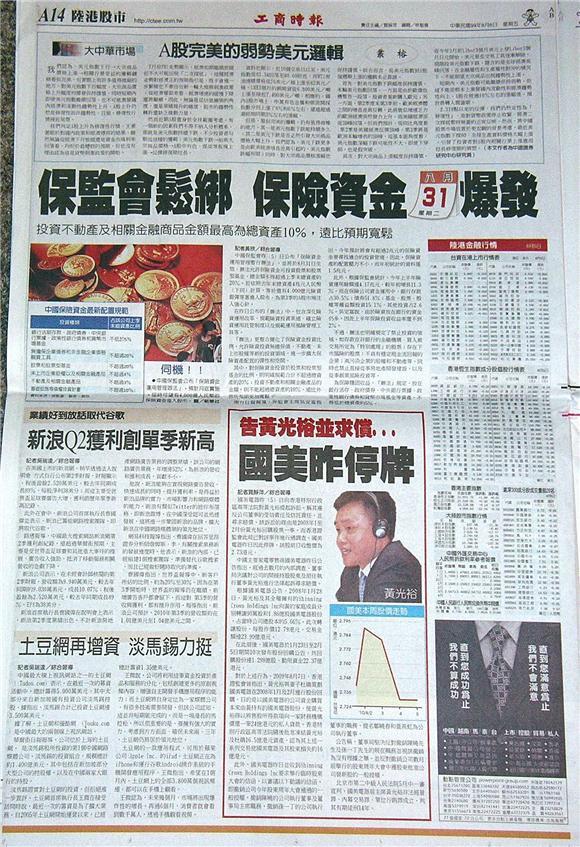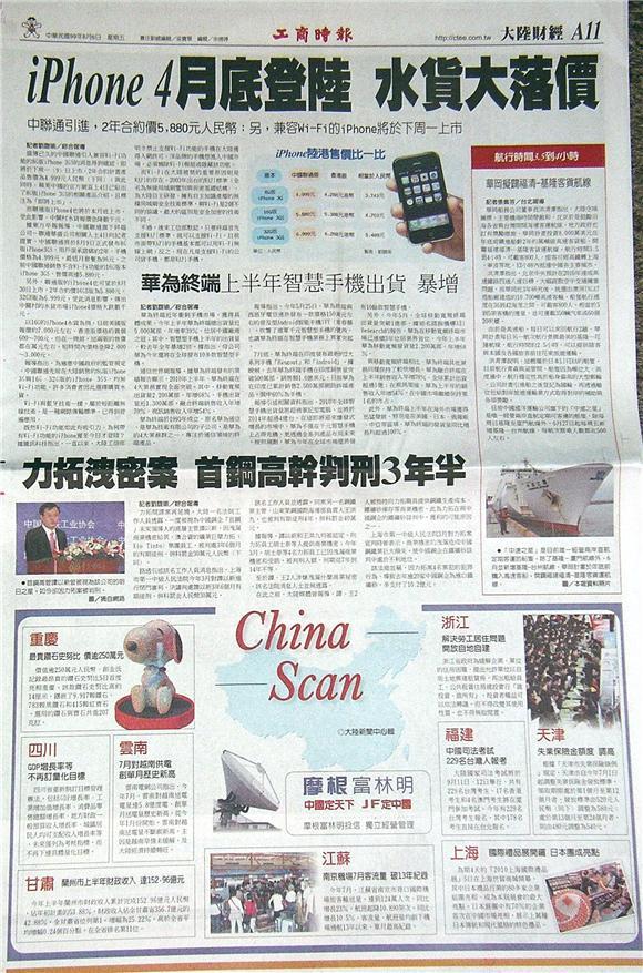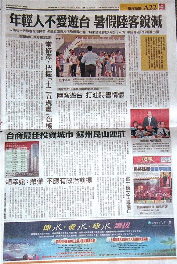 台灣主要報紙大陸版要聞標題一覽 (8月6日)