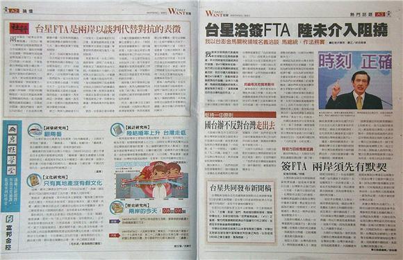 ■台星洽簽FTA 陸未介入阻撓 我以台澎金馬關稅領域名義洽談 馬總統:作法務實