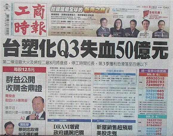 ◆工商時報:台塑化Q3失血50億元
