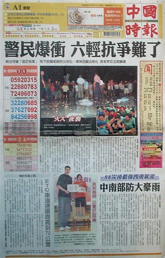 ◆中國時報:警民爆衝 六輕抗爭難了