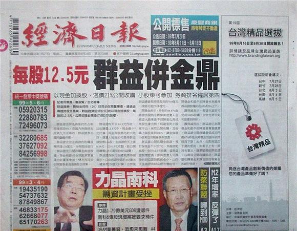 ◆經濟日報:每股12.5元 群益併金鼎