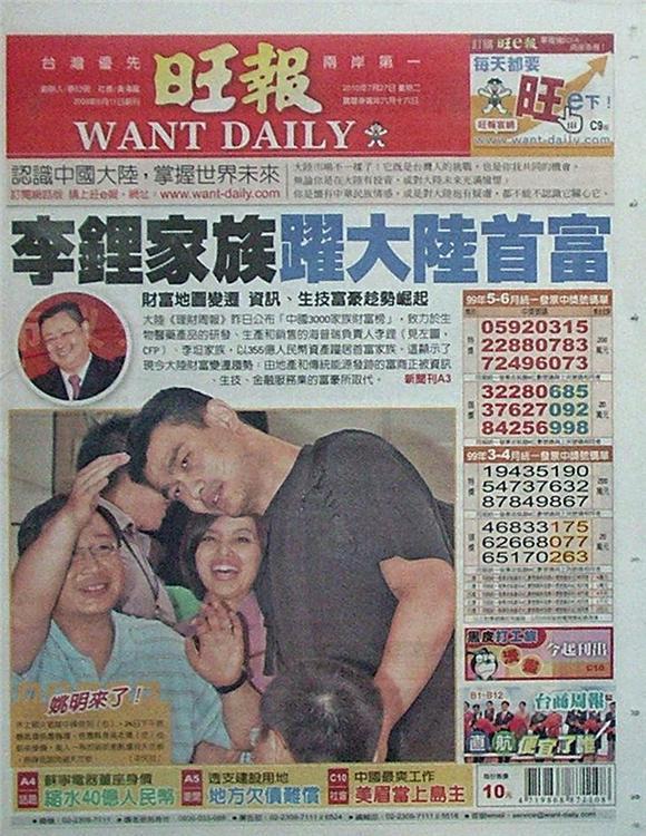 ◆旺報:李鋰家族躍大陸首富