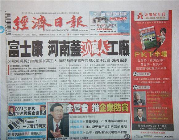 ◆經濟日報:富士康河南蓋30萬人工廠 鴻海否認