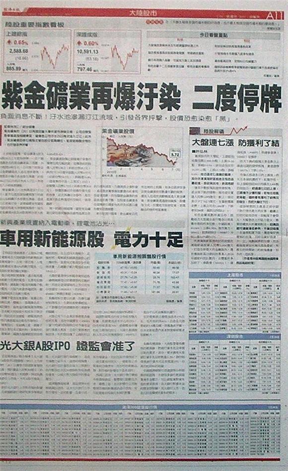 紫金礦業昨(26)日再度因重大事件宣布停牌交易,公司召開緊急會議處理相關事宜,據傳是公司汙水25日再次流入汀江,此外,紫金礦業的多位高階主管由卸任官員轉任,呈現官商融合情形,也引發界抨擊。