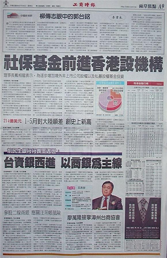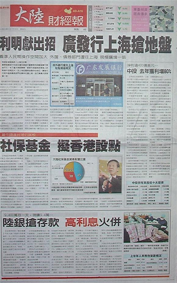 中國全國社會保障基金理事會(簡稱社保基金)理事長戴相龍表示,將在香港設置機構,以逐漸提高海外投資機會。由於戴相龍6月來台時曾明確表示,「台灣是他看好的市場」,一旦社保在港機構成立,未來可能借道香港轉進投資台灣。