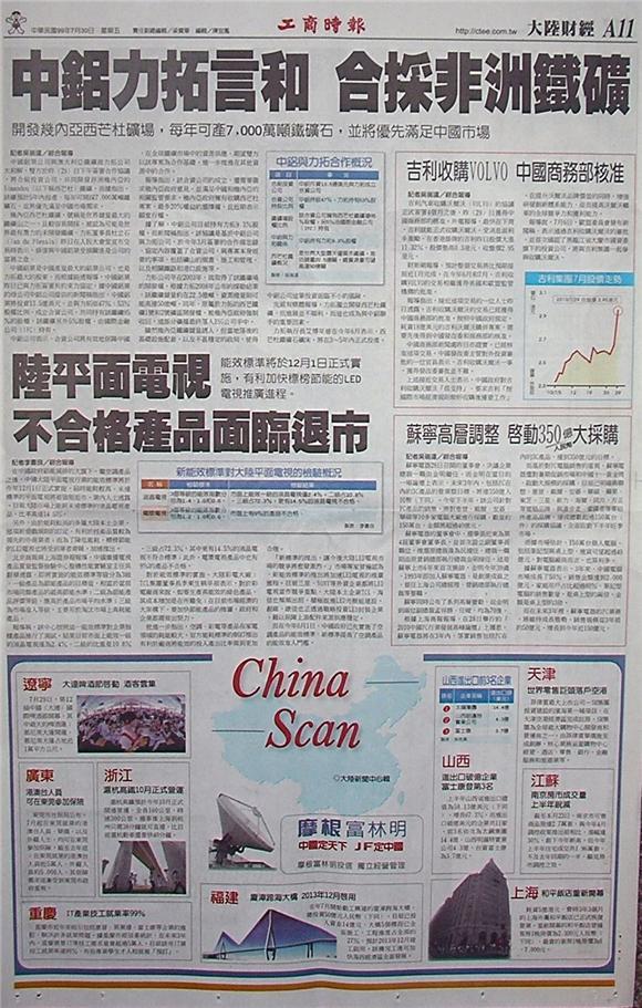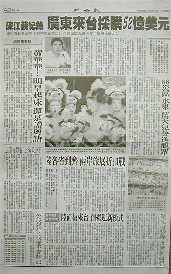 台灣主要報紙大陸版要聞標題一覽 (7月30日)
