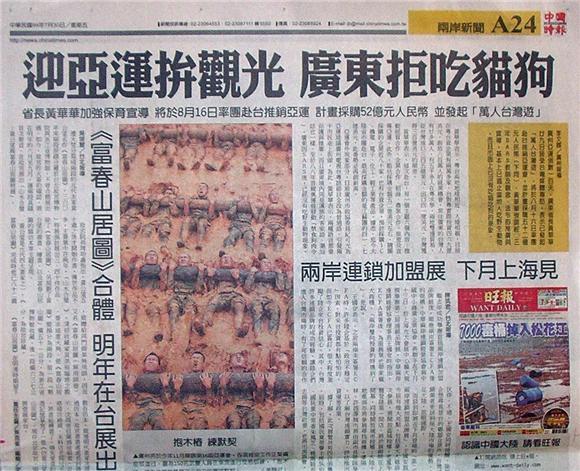 廣州亞運倒數一百天,廣東省長黃華華廿九日接受台灣媒體專訪,表示已發起「萬人台灣遊」,將於八月十六日率團赴台推銷亞運會,並計畫採購五十二億元人民幣(下同)。黃華華強調經○三年SARS教訓及觀念、法令的推廣與宣導,基本上已遏止當地人吃野生動物,而且市面上已沒有吃貓吃狗的景象。
